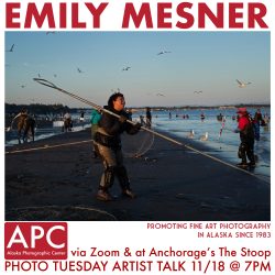 Please join us later this month for an artist talk by Emily Mesner ( @emilymesnerphoto )via zoom and at Anchorage’s The Stoop, a new center designed to inspire, educate & equip lens-based artists, located at 301 E Fireweed. Emily Mesner is an Anchorage-based artist who uses photography, creative writing and bookmaking to explore our collective Read more about November Photo Tuesday: Emily Mesner[…]