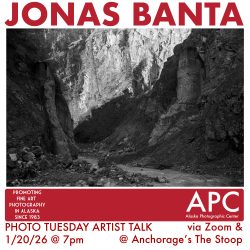 Please join us on 1/20 at 7pm for an artist talk by Jonas Banta ( @jonas.banta ) via zoom and at Anchorage’s @thestoop_prc The Stoop, a new center designed to inspire, educate & equip lens-based artists, located at 301 E Fireweed. Jonas Banta is a photographer and bookmaker currently living in Portland, Oregon. He holds Read more about January Photo Tuesday: Jonas Banta[…]