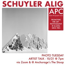 Please join us late this month for an artist talk by Schuyler Alig ( @schuyleralig )via zoom and at Anchorage’s The Stoop, a new center designed to inspire, educate & equip lens-based artists, located at 301 E Fireweed. Schuyler Alig is a photographer and videographer based in Alaska. Born in Philadelphia, her work in film brought her Read more about October Photo Tuesday: Schuyler Alig[…]