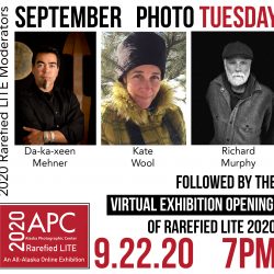 Thank you to all those who entered our 2020 Rarefied Lite online exhibition! We’re excited to announce that the show will go live after September’s #PhotoTuesday event, where three hand-picked Alaska artists will speak about their favorite pieces and the trends/evolution of Alaska-based photography. Join us on September 22nd at 7pm to hear Kate Wool @kateswool , Da-ka-xeen Mehner @dakaxeen , Read more about Rarefied Lite // Virtual Opening // 9.22.20[…]